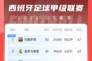 开云-皇马输球巴萨平!西甲积分榜:剩8轮,巴萨领先皇马4分